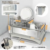 の商品について 【控えめで高級感のある外観】: 新グレーカラー(淡い豆沙色がかった高級感のあるグレー)の水受けトレイと銀色の光沢を持つカゴは、キッチンにモダンで洗練された外観を与えます。高品質な仕上げにより、高級感が感じられ、インテリアのアクセントとしても優れています。トレイがグレーカラーであることで、水垢や汚れが目立ちにくく、清潔感を保ちやすいです。高品質な銀色の光沢ステンレス素材は、汚れや水滴が付着しても簡単に拭き取れ、清掃が楽になります。オシャレな色の組み合わせにより、キッチンに置くことで気分が良くなり、生活や仕事のストレスを和らげるでしょう。