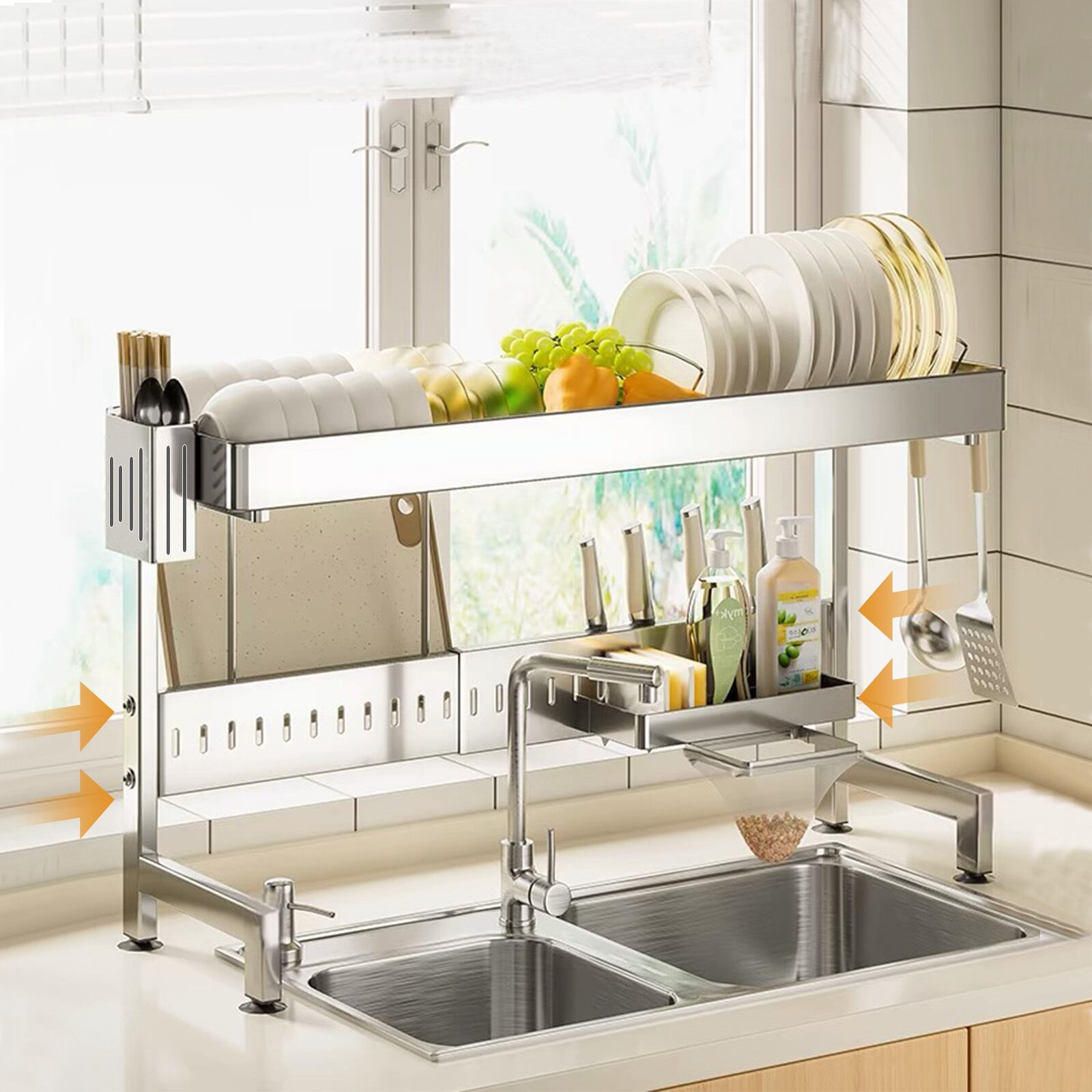水切りラック シンク上 食器 水切りかご 食器乾燥 収納 伸縮式 調整可能(幅さ66-87CM) 大容量 ステンレス製 日本語の説明書付 省スペース ステンレス