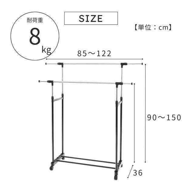 たて・よこ伸縮シンプルパイプハンガー ダブル ブラック