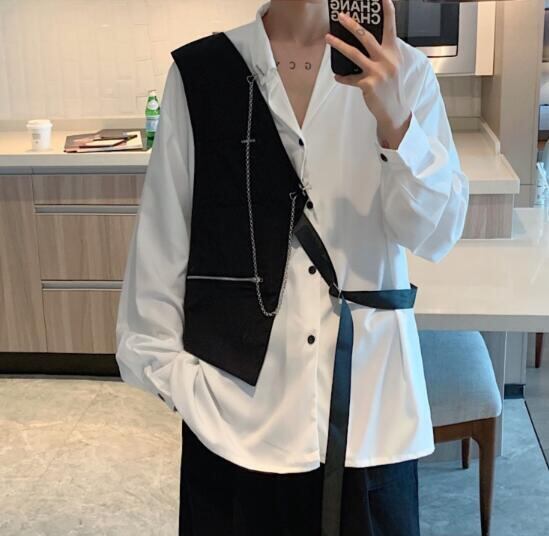 メンズ トップス シャツ レイヤード風 ワイシャツ 長袖 重ね着風 春秋