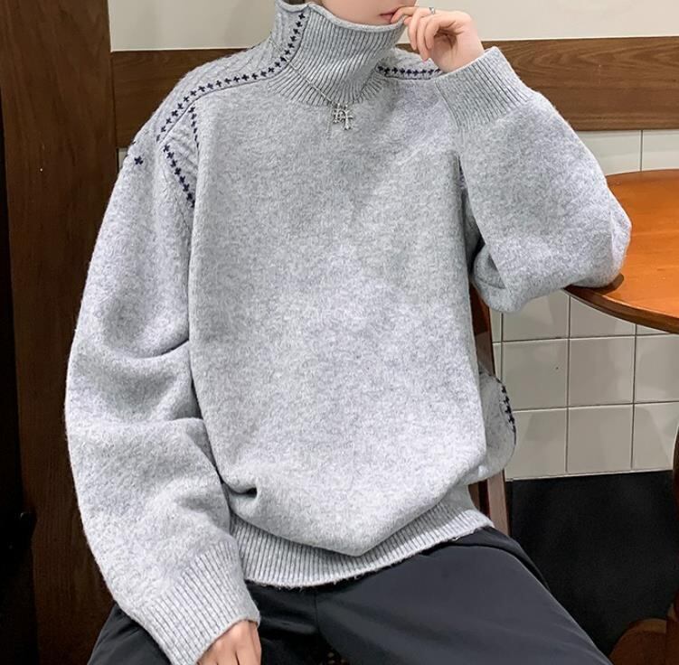 2025秋冬新作 メンズ 男 ニット 毛糸 トップス 長袖 ハイネック セーター カットソー
