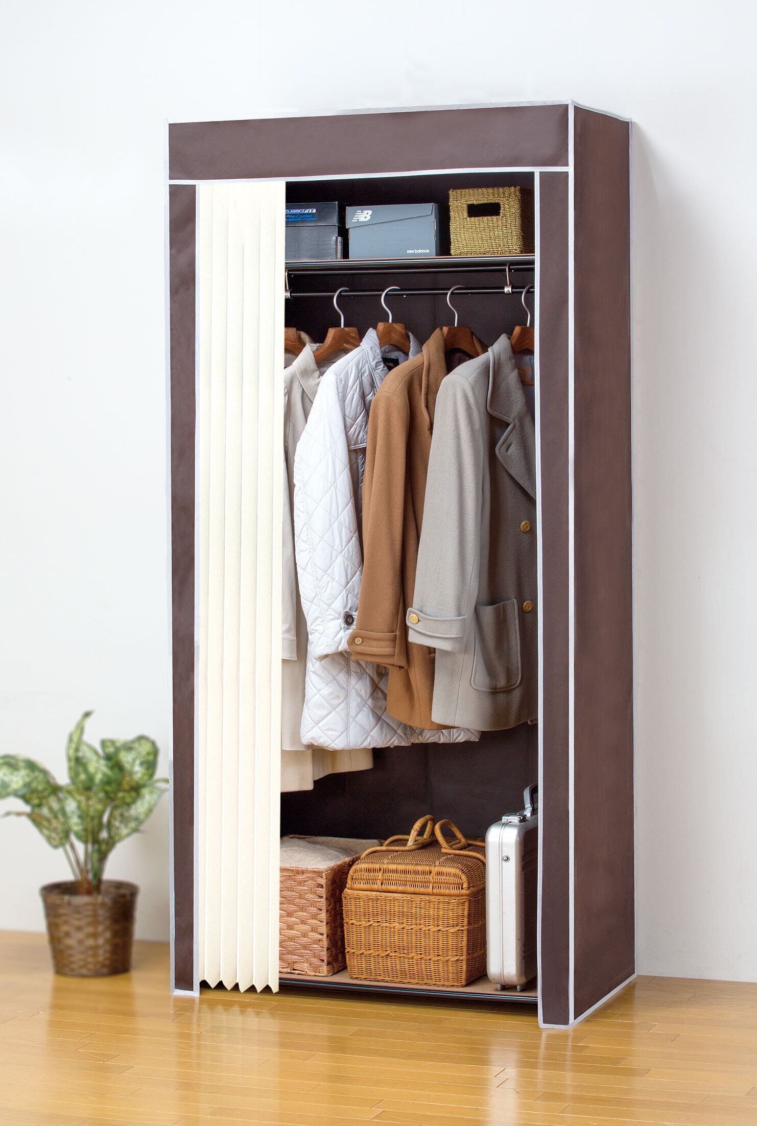 カバー付き、カーテン付きで衣類をホコリから守ります。